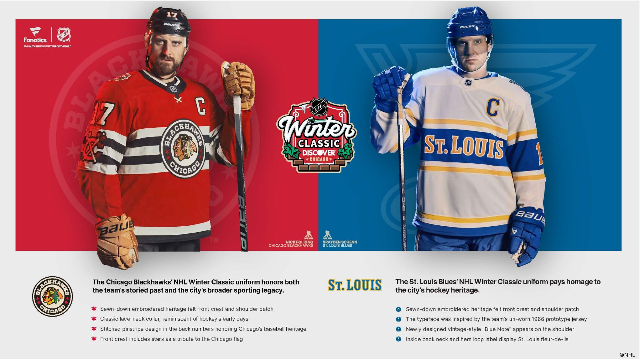 The NHL and Fanatics have unveiled the highly anticipated jerseys for the Discover NHL Winter Classic®, set to take place on December 31 at Wrigley Field. The Chicago Blackhawks an